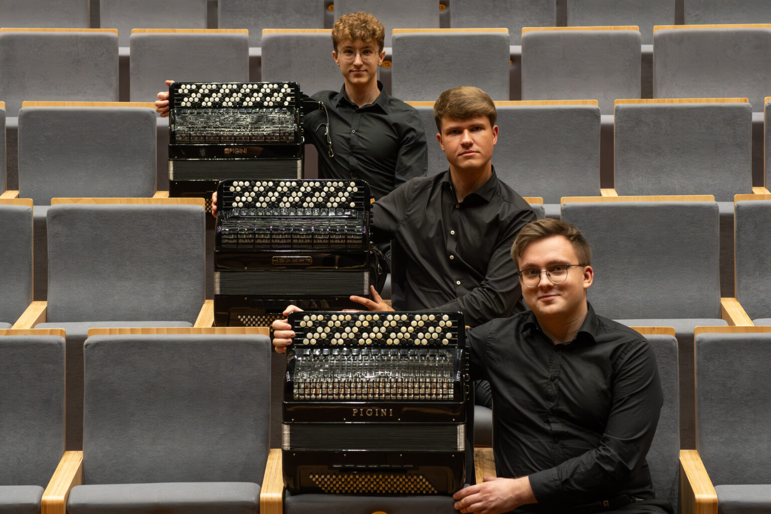 Międzynarodowy Festiwal Młodych Laureatów Konkursów Muzycznych w swojej jubileuszowej 35 odsłonie po raz drugi zagości w Gliwicach. To efekt współpracy Muzeum w Gliwicach, Stowarzyszenia Klub Inicjatyw Kulturalnych oraz głównego organizatora festiwalu – Instytucji Kultury im. Krystyny Bochenek Katowice-Miasto Ogrodów. Gliwicki koncert pozwoli odetchnąć na chwilę od gorącej atmosfery, jaka tradycyjnie towarzyszyć będzie zmaganiom uczestników 19. Międzynarodowego Konkursu Chopinowskiego. Tym razem wspólnie z naszymi gośćmi odkryjemy nowe brzmienia akordeonu. W programie pojawi się co prawda na chwilę bohater wielkiego konkursu, ale dominować będzie muzyka mistrzów XX i XXI wieku na czele z Andrzejem Panufnikiem i Wojciechem Kilarem, którego słynny poemat symfoniczny „Orawa” w wersji akordeonowej brawurowo zwieńczy całość. Wszyscy członkowie tria AccoArte to studenci Akademii Muzycznej im. Karola Szymanowskiego w Katowicach i laureaci licznych konkursów muzycznych o zasięgu krajowym i międzynarodowym, m.in. w Puli (Chorwacja), Wilnie (Litwa), Pradze (Czechy), Belgradzie (Serbia). Repertuar zespołu obejmuje zarówno oryginalną literaturę współczesną, autorskie transkrypcje, jak i muzykę rozrywkową.