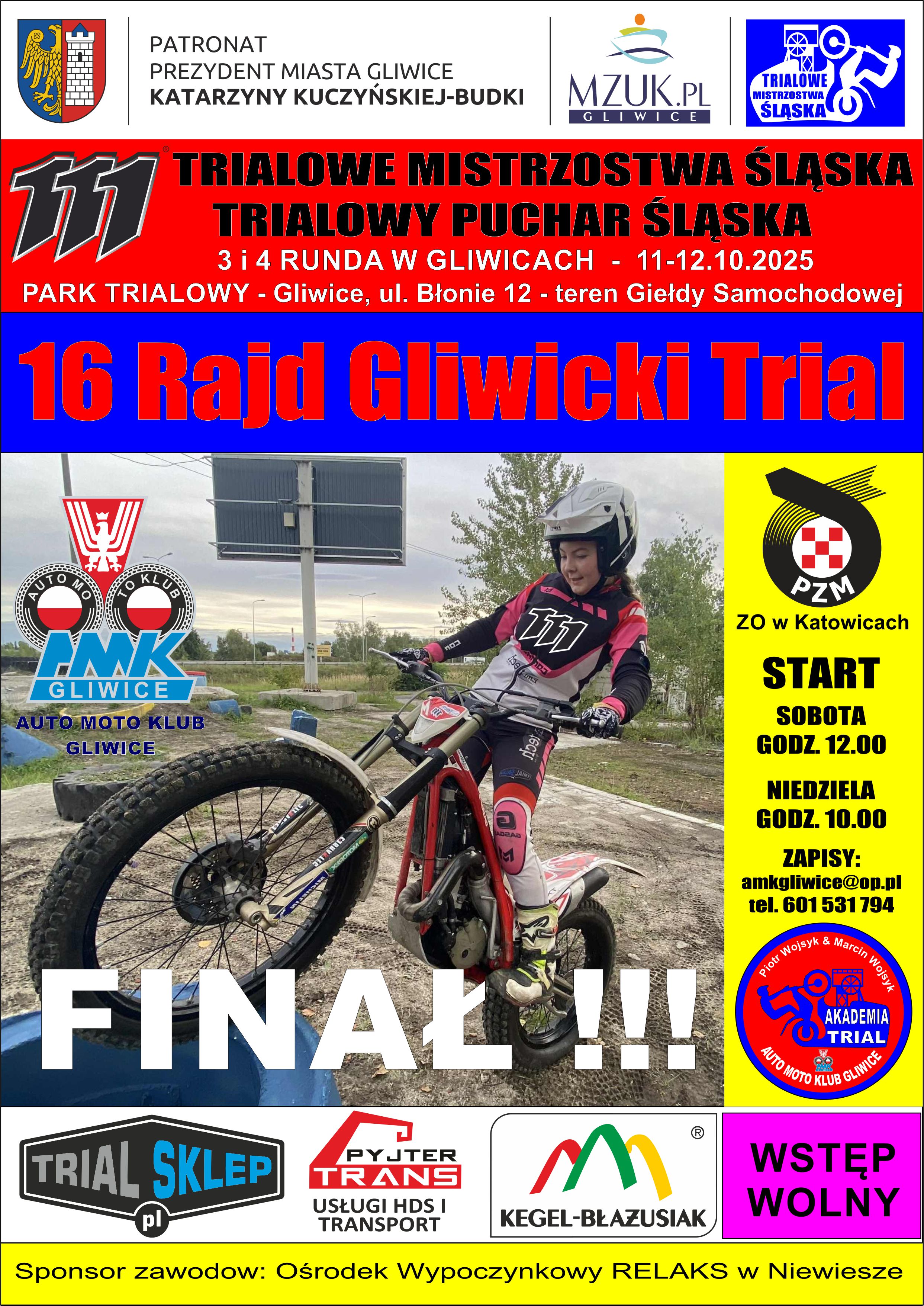 16 Rajd Gliwicki Trial - 3 i 4 runda Trialowych Mistrzostw Śląska zawody dla licencjonowanych zawodników oraz Trialowy Puchar Śląska amatorów.