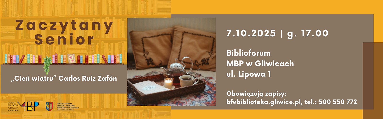 Obowiązują zapisy: tel. 500 550 772 lub e-mail: bf@biblioteka.gliwice.pl.