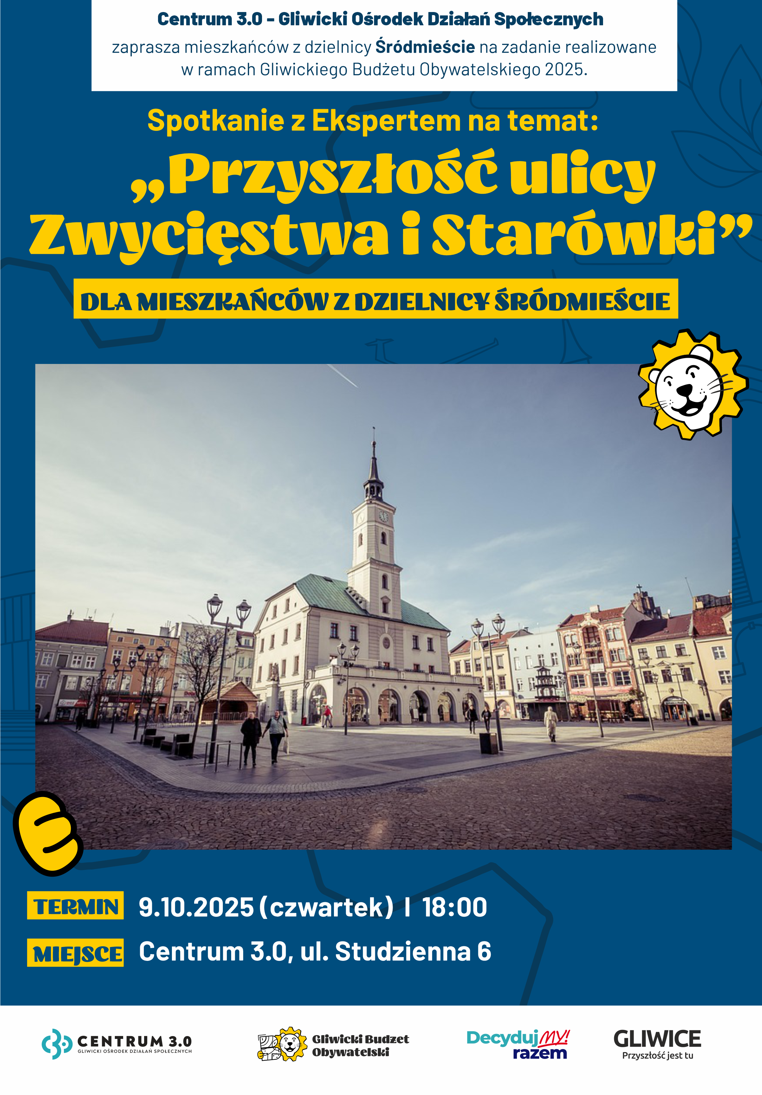 Zapraszamy mieszkańców dzielnicy Śródmieście na spotkanie z ekspertem, które odbędzie się w ramach Gliwickiego Budżetu Obywatelskiego 2025.