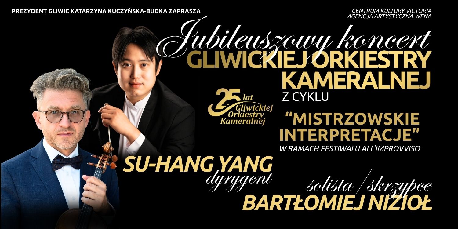Agencja Artystyczna „WENA” oraz Centrum Kultury Victoria w Gliwicach zapraszają 16 listopada 2025 roku o godz. 18.00 do sali koncertowej Państwowej Szkoły Muzycznej I i II st. im. L. Różyckiego przy ul. Księcia Ziemowita 12 w Gliwicach, na doroczny koncert Gliwickiej Orkiestry Kameralnej z cyklu Mistrzowskie interpretacje, który tym razem będzie głównym punktem obchodów Jubileuszu 25-lecia zespołu.