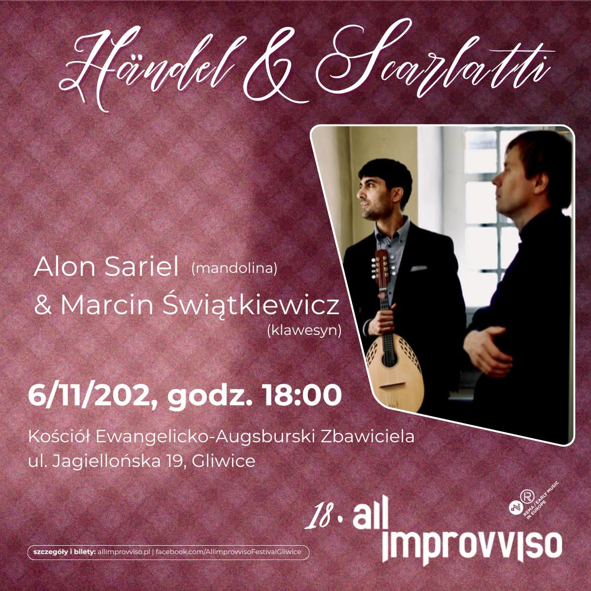 6 listopada na scenie Festiwalu All’Improvviso spotkają się ich duchy – w interpretacjach Alona Sariela (mandolina Vinaccia z 1780 roku) i Marcina Świątkiewicza (klawesyn). Ten dialog dwóch instrumentów ukaże nową perspektywę na muzykę kameralną baroku. W programie m.in. Suita f-moll HWV 433, sonaty Scarlattiego oraz unikatowe opracowania koncertu op. 4 nr 6 – ukazujące barok jako przestrzeń wolności, improwizacji i wspólnej narracji.