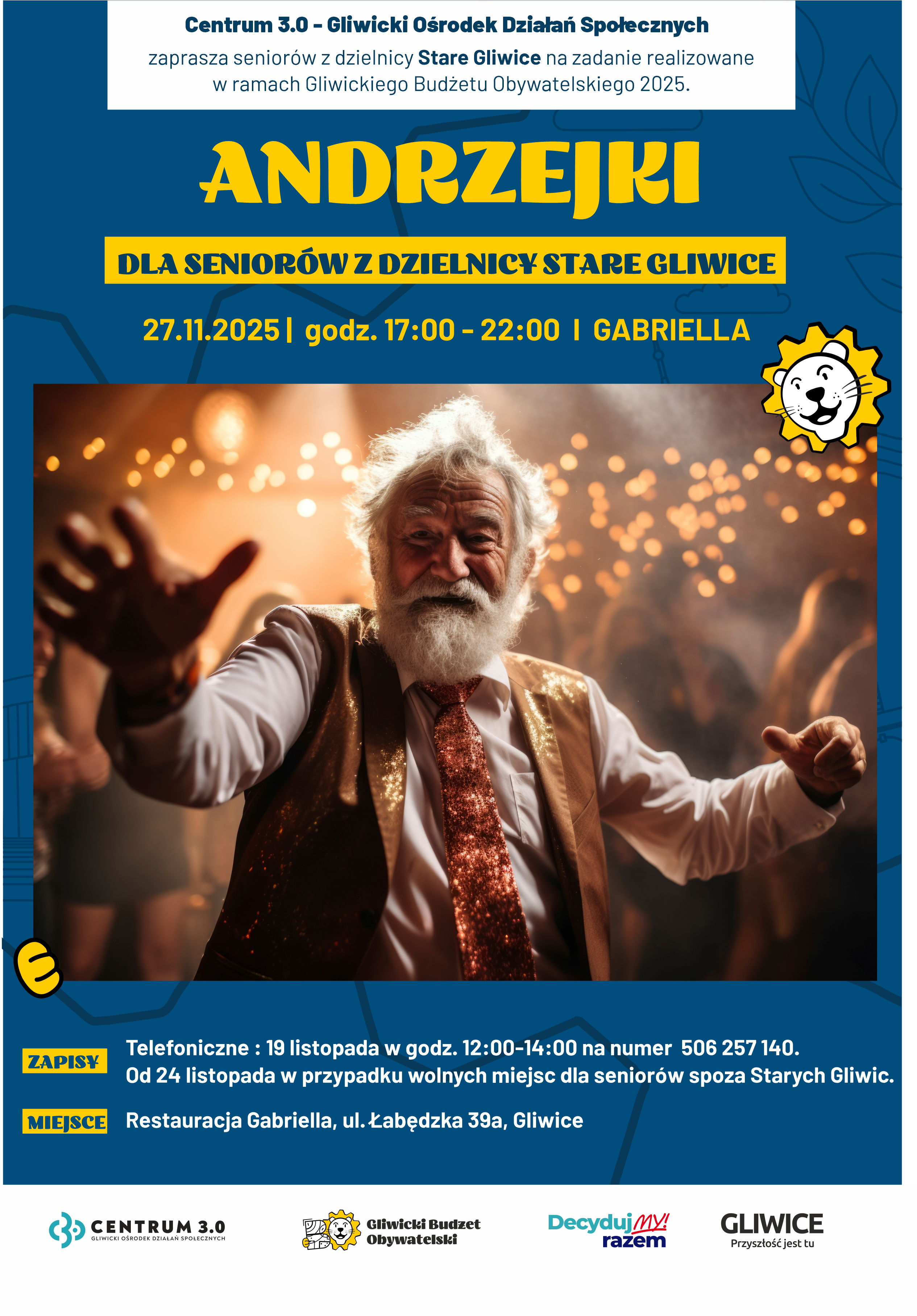 zapraszaMY seniorów z dzielnicy Stare Gliwice na andrzejkowe spotkanie realizowane w ramach Gliwickiego Budżetu Obywatelskiego 2025.