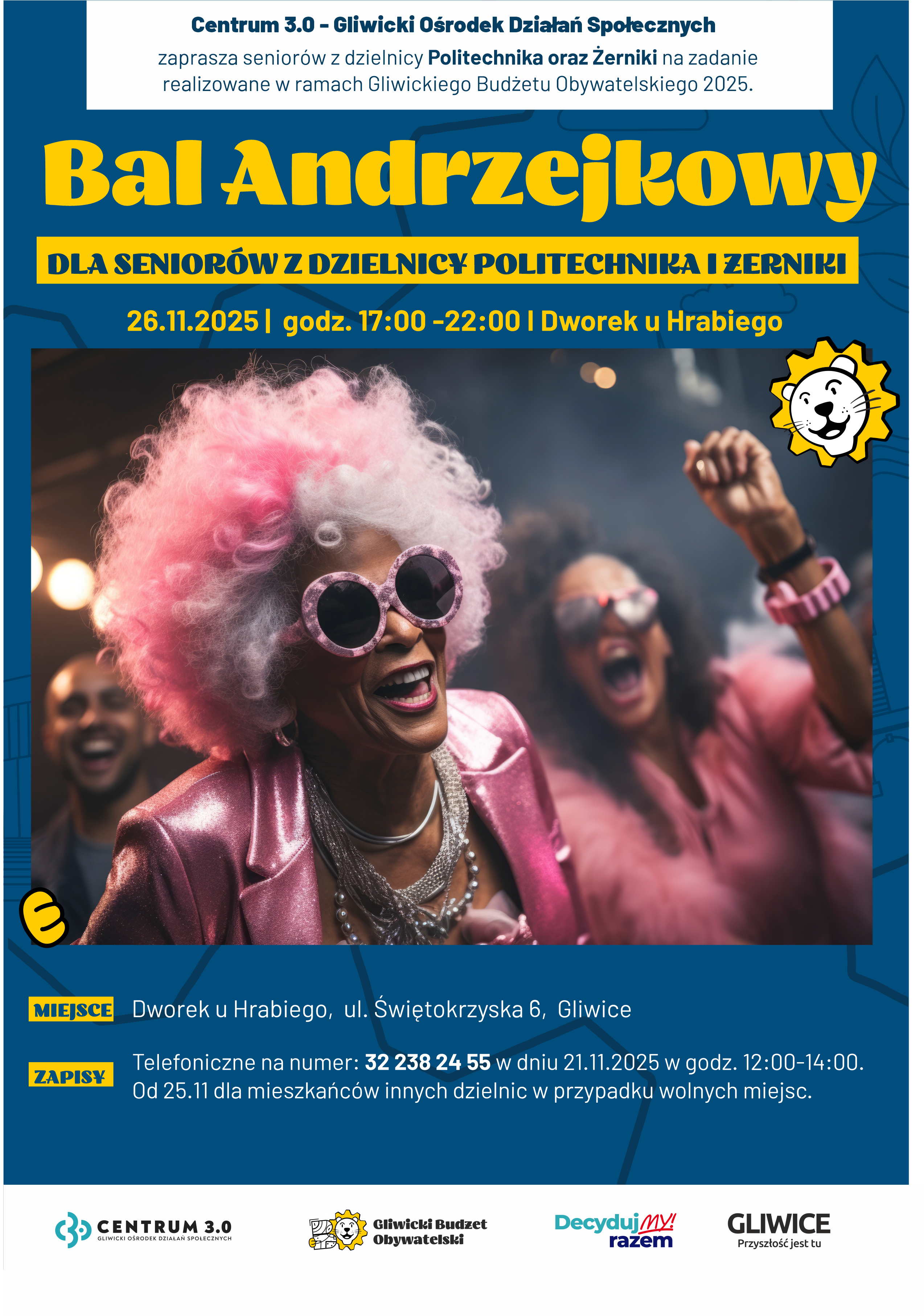 Zapraszamy seniorów z dzielnic Politechnika i Żerniki do zapisów na Bal Andrzejkowy, który odbędzie się 26 listopada w godzinach 17:00–22:00.