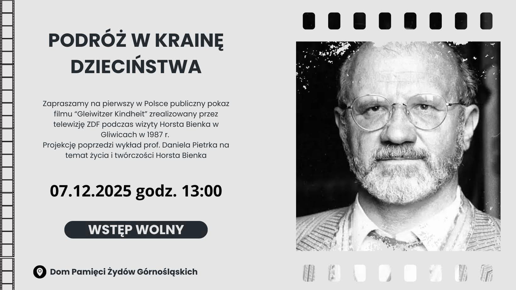W Domu Pamięci Żydów Górnośląskich odbędzie się pierwsza w Polsce publiczna projekcja filmu dokumentalnego nakręconego podczas wizyty Horsta Bienka w Gliwicach w 1987 r. Widzowie będą mogli towarzyszyć pisarzowi w wędrówce po jego rodzinnym mieście i zobaczyć, jak Gliwice zmieniły się od tamtego czasu. Projekcję poprzedzi wykład prof. Daniela Pietrka, znawcy twórczości i biografii Horsta Bienka.