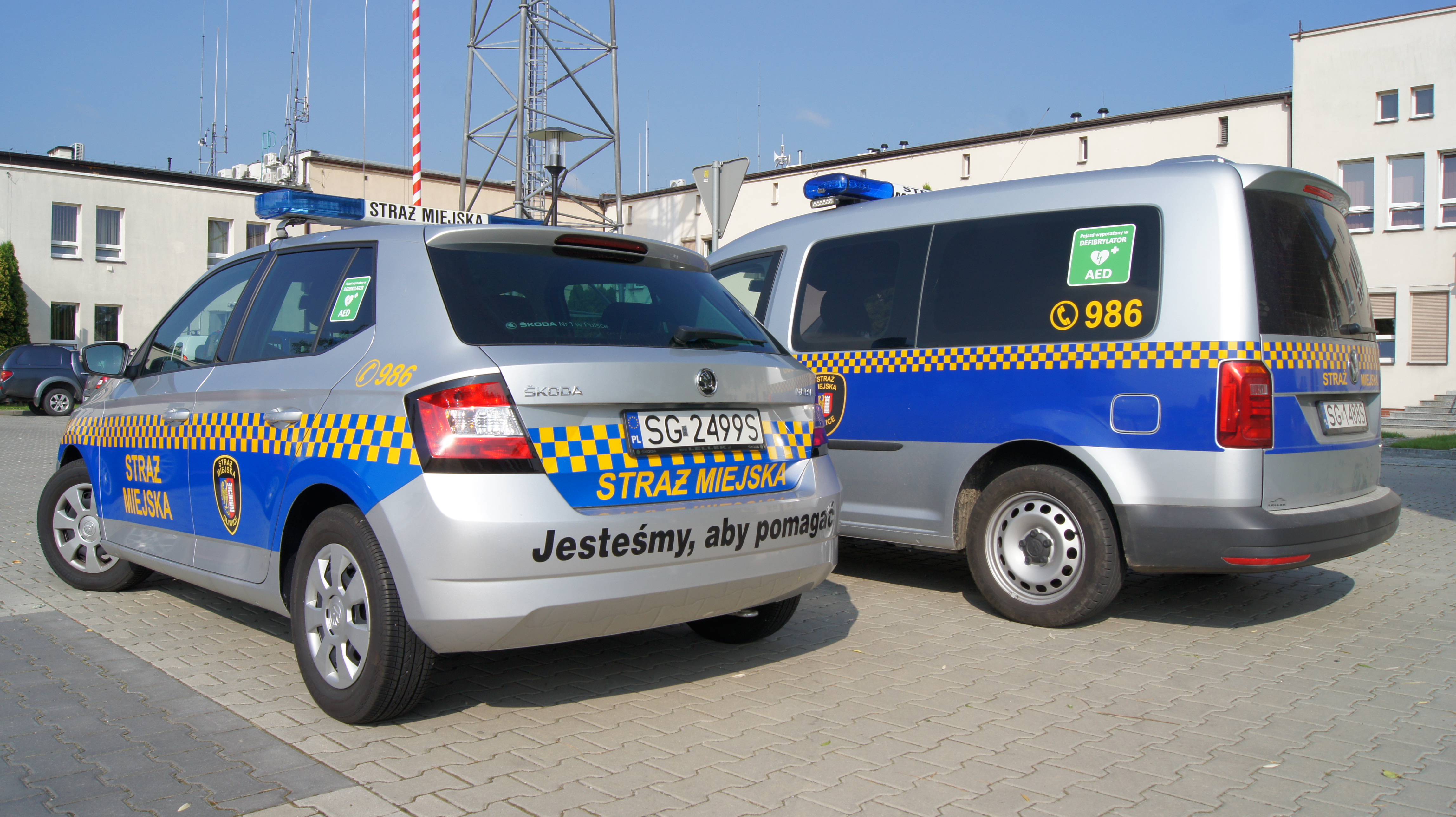 mobilne AED - w 10 pojazdach służbowych Straży Miejskiej oznaczonych naklejkami AED