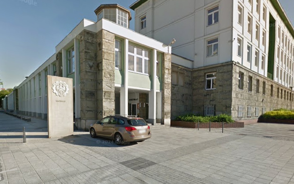 wewnątrz budynku - przy głównym wejściu. Dodatkowo urządzenia AED znajdują się w samochodach Straży Akademickiej