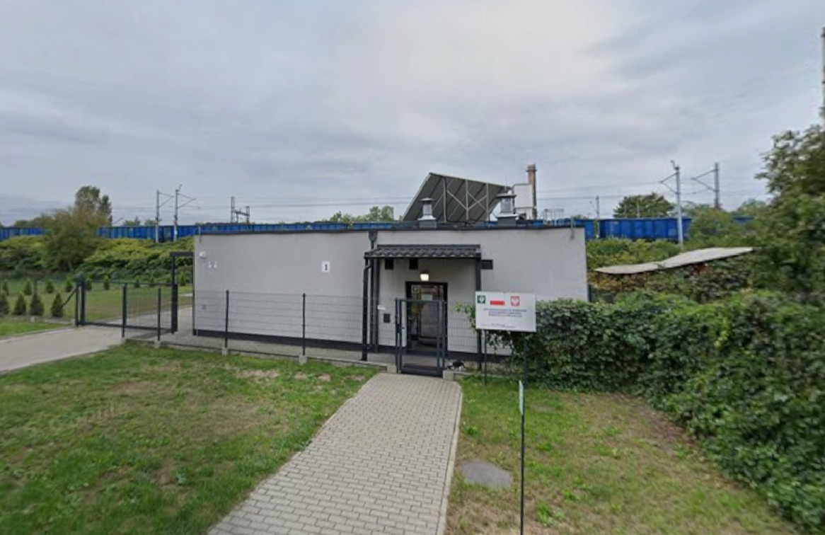 wewnątrz budynku – na środku korytarza, ok. 3 m od głównego wejścia