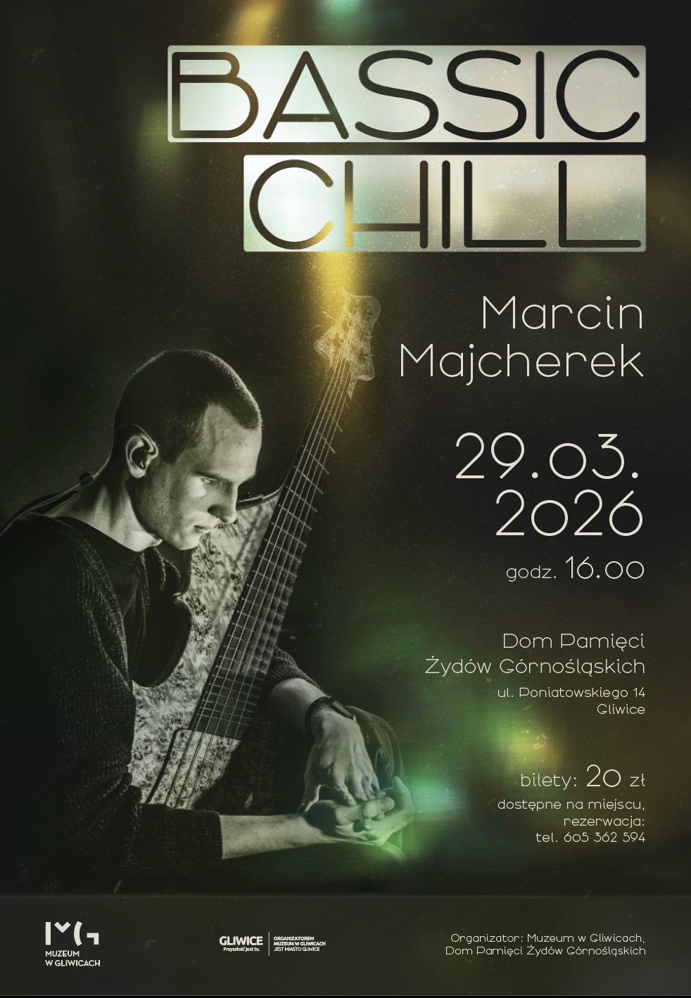 29 marca o godz. 16:00 zapraszamy do Domu Pamięci Żydów Górnośląskich na koncert bassic chill - autorski projekt Marcina Majcherka.