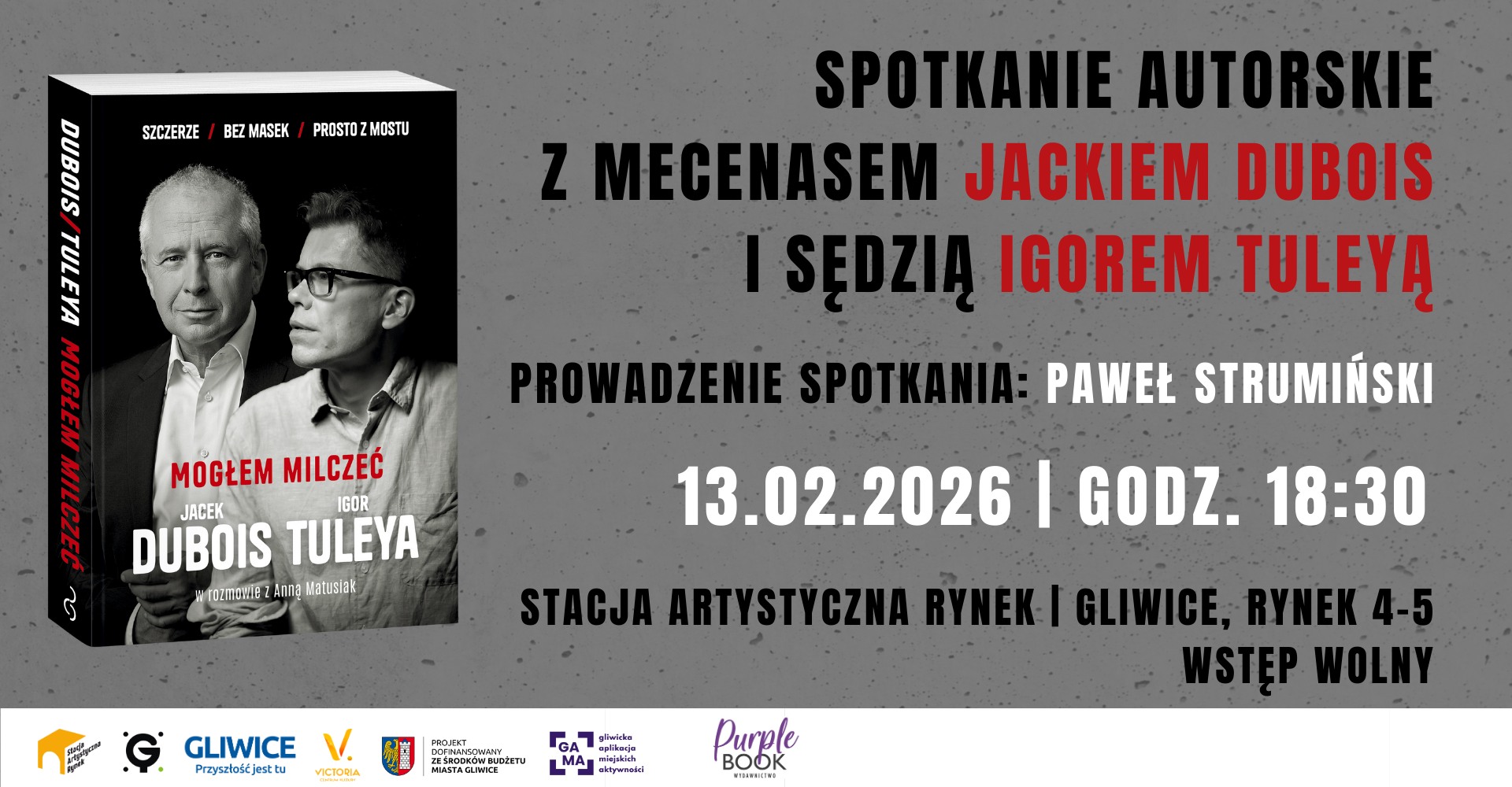 Stacja Artystyczna Rynek oraz Wydawnictwo Purple Book zapraszają na spotkanie autorskie z mecenasem Jackiem Dubois i sędzią Igorem Tuleyą wokół książki "Mogłem milczeć".