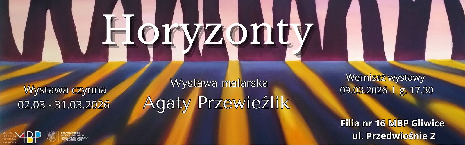Na wystawie: Horyzonty autorka prac, Agata Przewieźlik, prezentuje cykl obrazów przedstawiających bezkres nieskończoności. W swojej pracy artystka skupiła się na wizualnej zmienność krajobrazu. Poprzez różnego rodzaju przekształcenia pejzażu, wnikliwą obserwację zależności kolorystycznych, syntezę kształtów i sprowadzenie ich do plamy barwnej, uchwyciła zmienność obserwowanego fragmentu przestrzeni. Poddała analizie różnorodność jego wyglądów, biorąc pod uwagę między innymi; upływ czasu, zmienność warunków atmosferycznych, a nawet własne emocje. Wyeliminowała z pejzażu wszelkie wizualne „przeszkody” na drodze do horyzontu. Niebo, chmury, słońce, góry, drzewa, jeziora, zredukowane zostały do obszarów barwnych. Na płótnach widnokrąg rozpościera się szeroko i daleko. Niczym w filmie poklatkowym zmiany otoczenia widoczne są na kolejnych sekwencyjnych fragmentach obrazu.