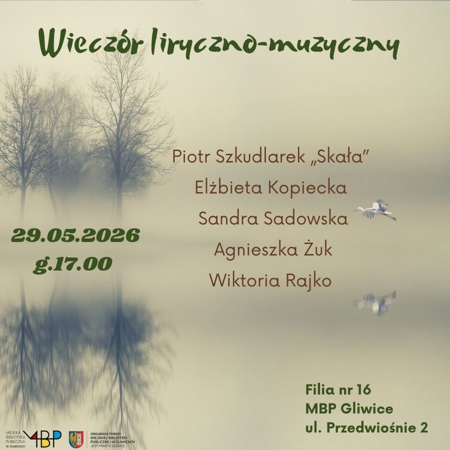 Obowiązują zapisy: tel. 32 237 07 23, email: filia16@biblioteka.gliwice.pl