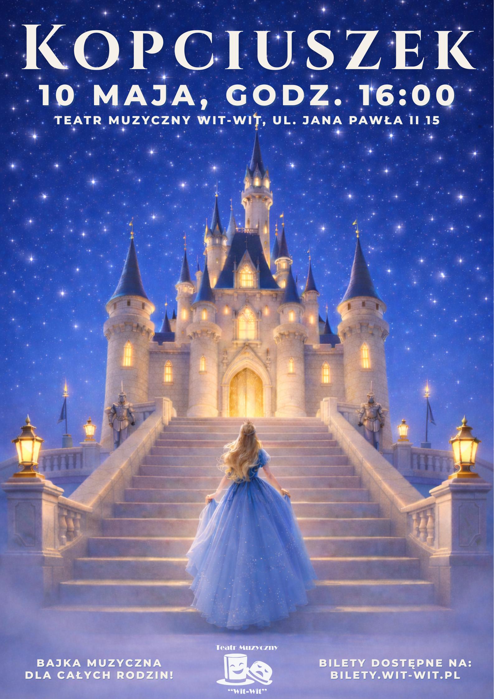 Kopciuszek to pełna uroku, muzyki i teatralnej magii adaptacja jednej z najpiękniejszych baśni, przygotowana przez Teatr Muzyczny Wit-Wit.