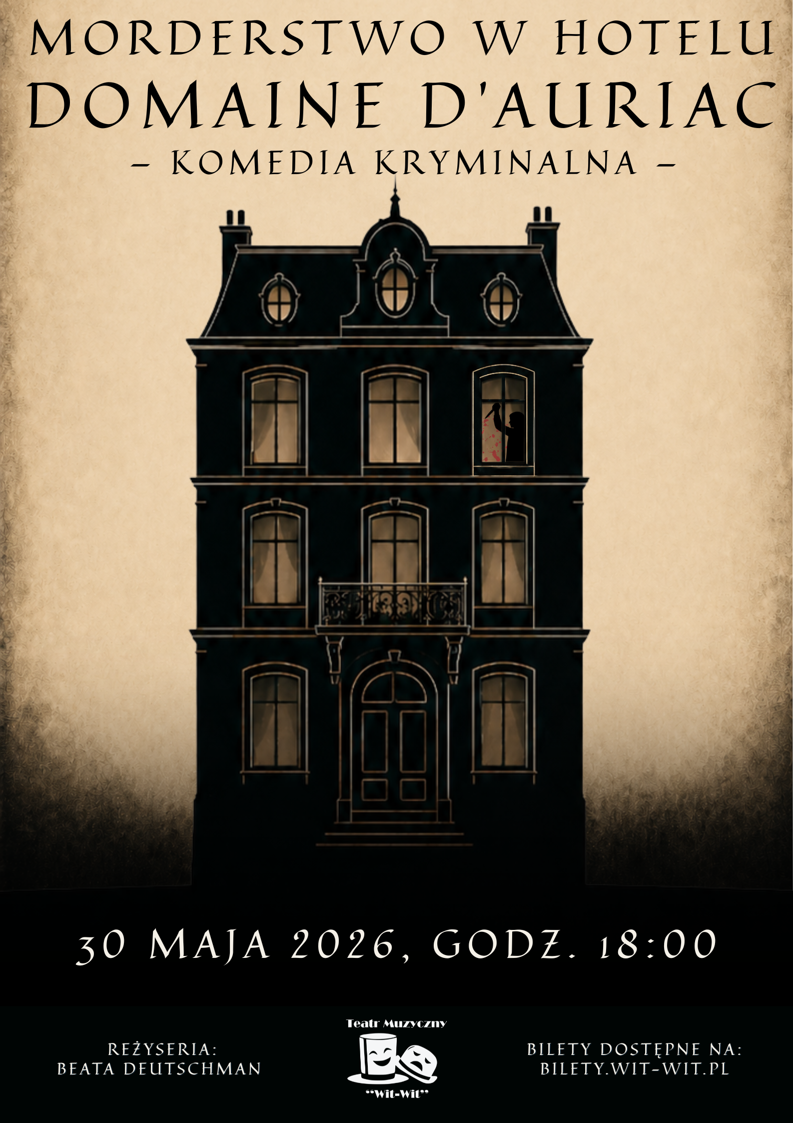 Spektakl łączy klimat klasycznej zagadki kryminalnej z humorem, teatralną intrygą i lekkim przymrużeniem oka. To propozycja dla widzów, którzy lubią tajemnicze historie, wyraziste postacie i elegancką atmosferę dawnego hotelu.